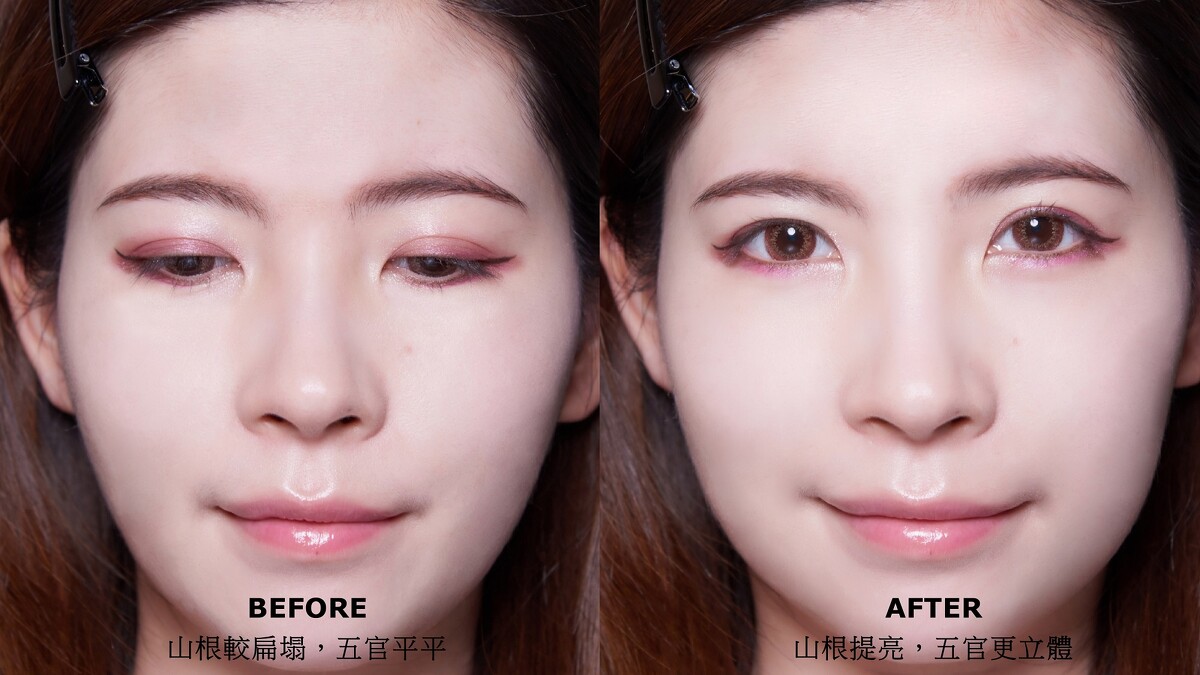 透過明暗對比、提升自然的光澤感,山根飽滿、視覺上五官就能更立體。M編建議搭配限定附贈的三角海綿使用,粧感會更細緻。