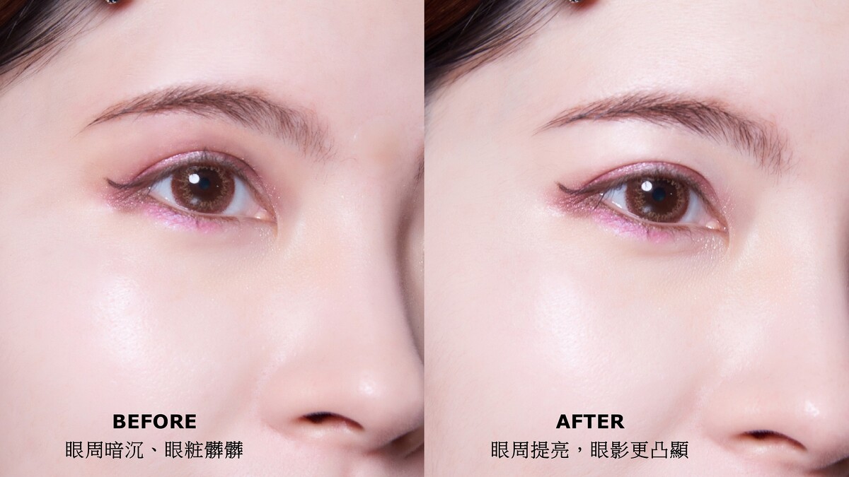 不會破壞原本的眼粧、又能瞬間提亮眼周膚色,讓眼粧的色彩鮮明耀眼,眼神也更明亮迷人。