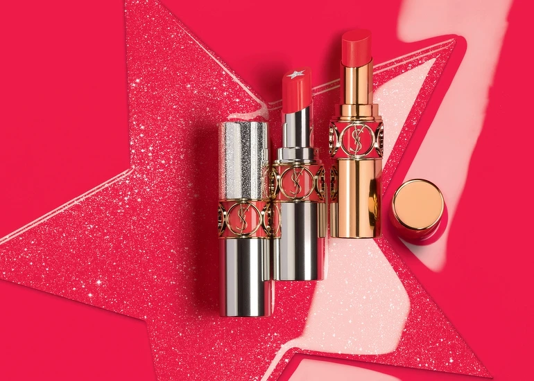 YSL真的很擅長在口紅中央下功夫,之前就有中間是小嘴唇圖案的情挑誘吻雙色蜜唇膏、黑色愛心圖案的情挑誘吻豐潤蜜唇膏。2020年春季新品則看上經常出現在秀場的搖滾星星圖案,推出星星夾心唇膏「情挑誘吻星鑽蜜唇膏Rouge Volupte Rock Shine」,外型與現在的「金管」、「銀管」相同,預計會取代情挑誘吻雙色蜜唇膏。