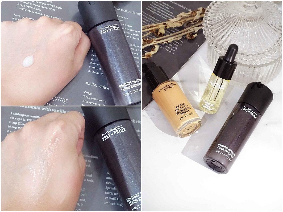 入冬乾冷氣候發威,乾肌人最在意的底妝吃不進肌膚,浮粉卡粉狀況…,跟M編同樣身為乾肌苦主妳一定要試試這罐櫃姐沒有說,就默默賣爆的隱藏版妝前保濕之神:M.A.C最強妝前小黑瓶「瞬間保濕精華」,用4滴的量就等於敷了一張保濕面膜!妝前用為肌膚迅速解渴,肌膚立刻漾出水光,達到最完美的上妝狀態,神乎其技的保濕力,來自植萃保濕複合配方:紅藻精華及玻尿酸鈉為肌膚造水補水,讓肌膚回復飽水彈力,咖啡因及蘆薈葉精華在肌膚上形成舒緩保水膜,強力鎖水同時鎮靜敏感的乾燥肌膚,使用後膚況真的差很多!。