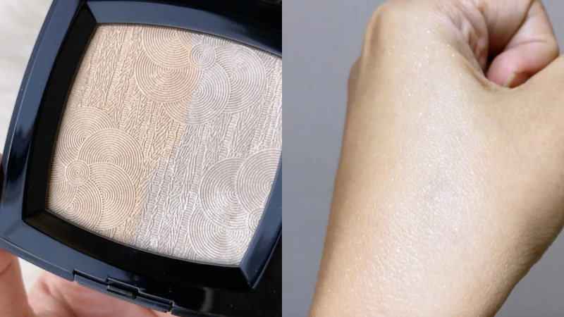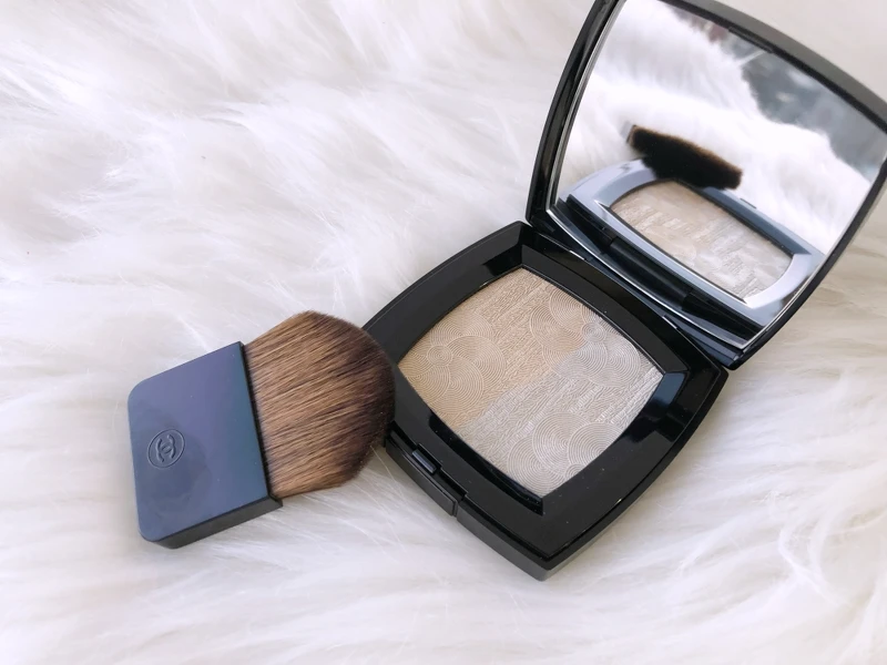 由香奈兒全球彩妝創意研發中心推出的限量彩妝指標系列「香奈兒山茶花絹絲亮采盤」,是一盤同時擁有米金和鉑金色的雙色打亮盤,輕刷即可創造如金色薄紗般的燦亮光澤。