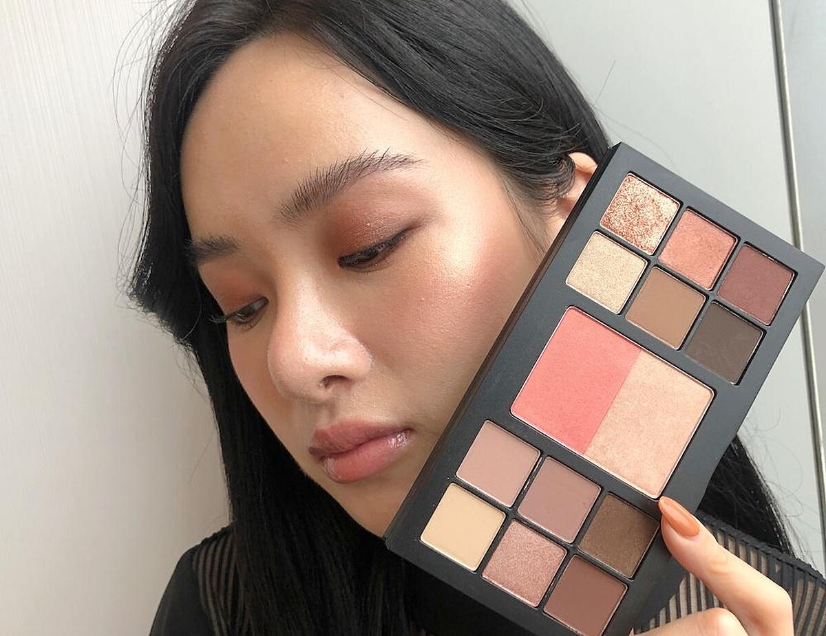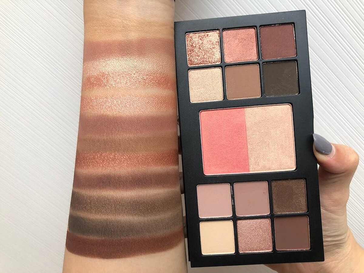 一盤包含12款實用大地色,網羅粉霧、亮片、緞光質地,以及2款腮紅和打亮色。