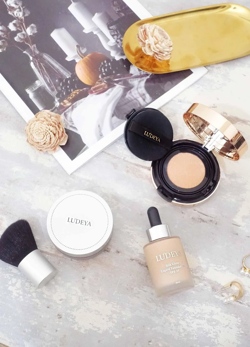 底妝最後一步用LUDEYA 絲綢柔光無瑕美肌蜜粉定妝,添加玻尿酸和膠原蛋白萃取的保養型微臻蜜粉,保濕鎖水、長時間控油,維持肌膚油水平衡,讓肌膚不亂出油,超細緻的粉質,刷上後膚質變得好柔滑,毛孔也瞬間隱形,膚質整天超柔嫩清透有光澤,打造溫柔小姊姊的仙氣柔光美肌!