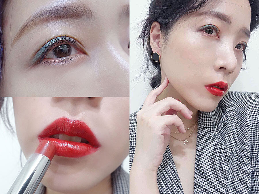 一點都不會難駕馭的綠色,只需局部點綴在眼摺處,眼神就有如極光般的閃耀時尚光澤,女王氣勢爆棚的個性眼妝加上撩人的微醺性感紅唇,直接宣告霸氣擄獲你的心。