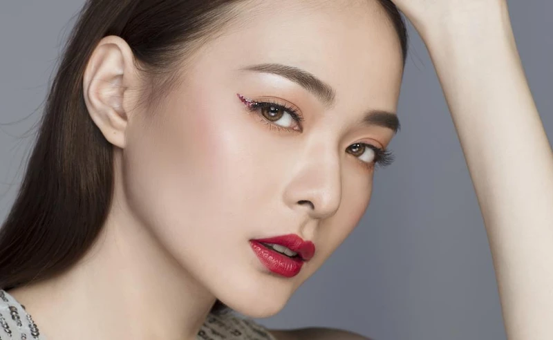 眼尾的紅亮片眼線,在夜店昏暗的環境下,在講話時眨眼間會閃動著珠光亮片,讓人離不開你的雙眼,不過於浮誇又電力十足。