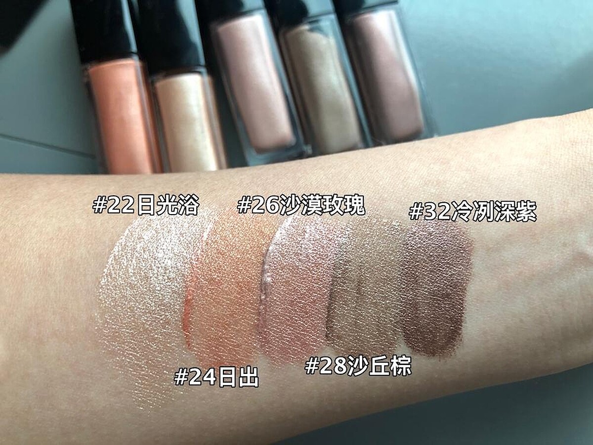 眼影露是香奈兒首次推出的眼部彩妝產品,五個色選可輕鬆任意搭配,也適合和眼影做暈染。搭配色號#22日光浴或#26沙漠玫瑰可以營造層次光感,不管是利用指腹或是暈染、眼影刷皆可輕鬆打亮明眸;以帶棕色的#32冷冽深紫塗抹整個眼瞼則可讓眼睛更加奪目。