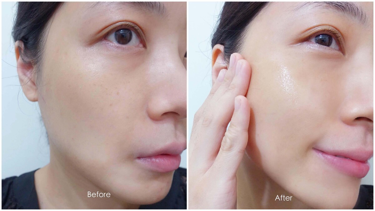 特別的獨家水精華成分,接觸肌膚時會化成清爽液態,才一推開肌膚瞬間吸收,超清爽完全不黏膩,留在肌膚上的只有滿滿的柔嫩水感。乾紋炸裂、肌膚脫皮時,還可以直接將這罐妝前安瓶當成妝前保濕面膜使用,四滴就等於一張保濕面膜的含水量,厚敷五分鐘後按摩到吸收,乾皮人M編親自認證敷完立即回歸柔嫩水光肌,完全就是一罐妝前急救玻尿酸。