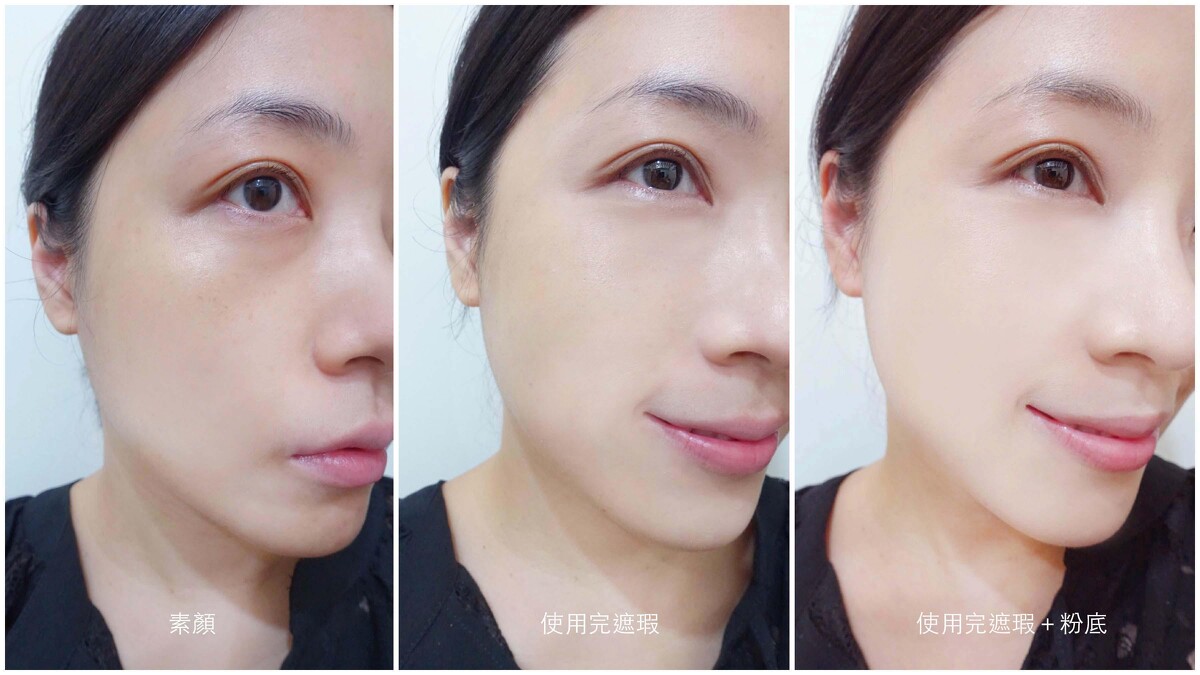 重度度黑眼圈想要遮得自然的關鍵:根據黑眼圈色調先校色後遮瑕!容易越遮越髒的青色黑眼圈,必須先用橘色調打底!