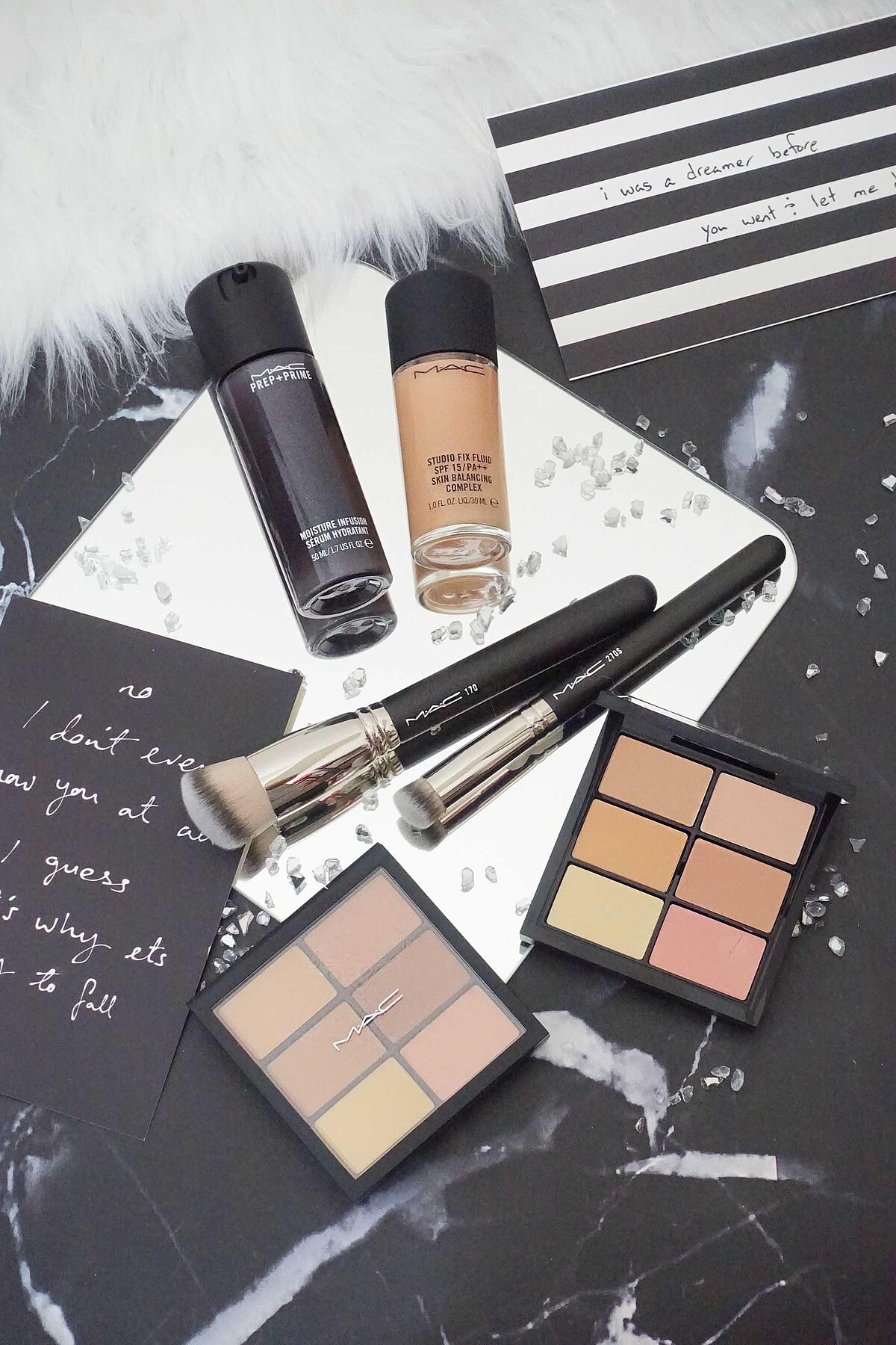 其實編的肌膚並沒有好到無瑕,熬夜趕稿(追劇)、頂著烈日拍照跑活動,這些職災讓肌膚暗沉斑點痘疤…樣樣少不了,但上完底妝後就擁有被問爆的無瑕母胎美肌(甩髮)。M編的底妝懶人包其實超簡單,就是M·A·C「妝前瞬間保濕精華+超持妝無瑕粉底液+超持妝六色遮瑕盤」!年末聚會只有穿搭行頭真的不行,還要有華麗光圈無瑕奶油肌,讓妳輕鬆制霸閨蜜圈!