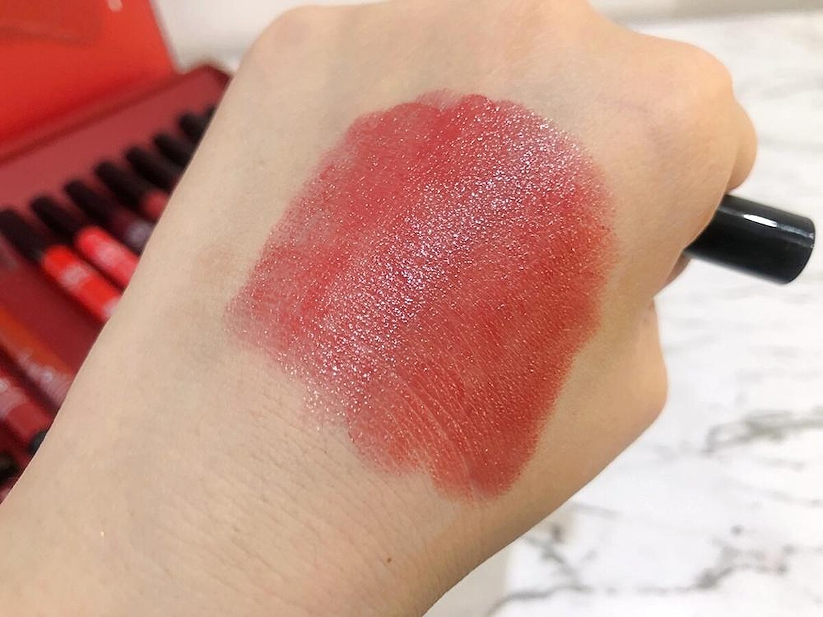 在韓國則是大推400朱砂紅,薄擦、厚擦呈現很不一樣的風格,色彩紅潤又顯氣色。