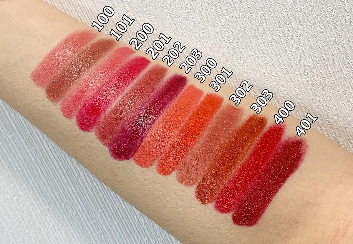 其中特別試色了101、202、302、303五色推薦給大家,包含了絕對不踩雷的豆沙粉、玫瑰奶茶、乾燥玫瑰和中藥色,顯白又襯膚,不論是黃皮白皮都好駕馭!