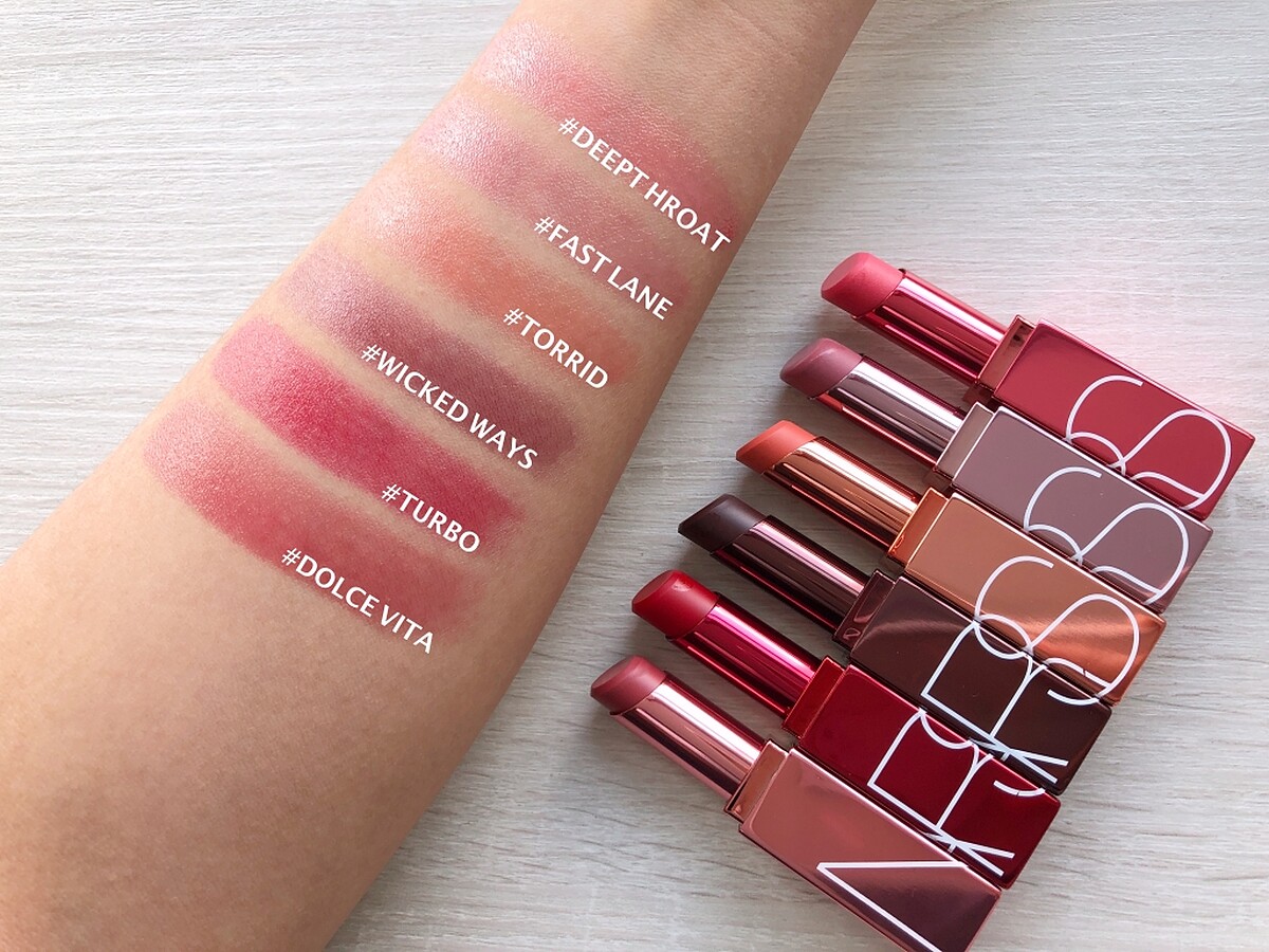 ↑NARS夏日微醺奶酒系列唇彩手部試色