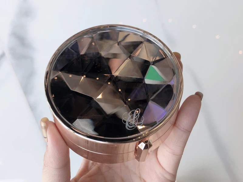 首先是相當精緻奢華鑽石切面外盒,反射著閃耀光影,拿到手上一整個氣勢大升,氣墊粉撲為鑽石菱形設計,易於上妝在臉部的細節處。