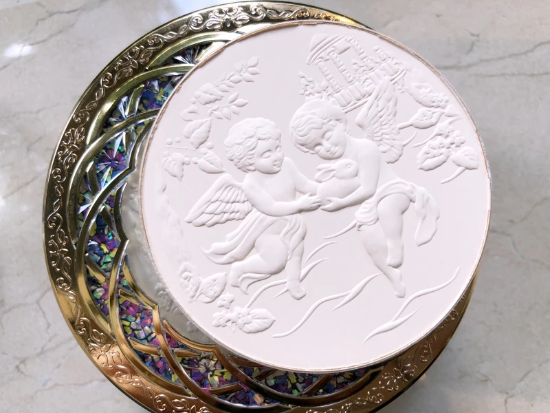 慶祝30週年,蜜粉餅外觀當然更講究,外盒宛如米蘭大教堂的彩繪花窗玻璃,閃耀著晶瑩剔透光采,粉體上的天使雕刻工藝同樣華麗精緻。粉體則添加薔薇萃取、玻尿酸、蜂王乳精華,還有頂級薔薇馨香。