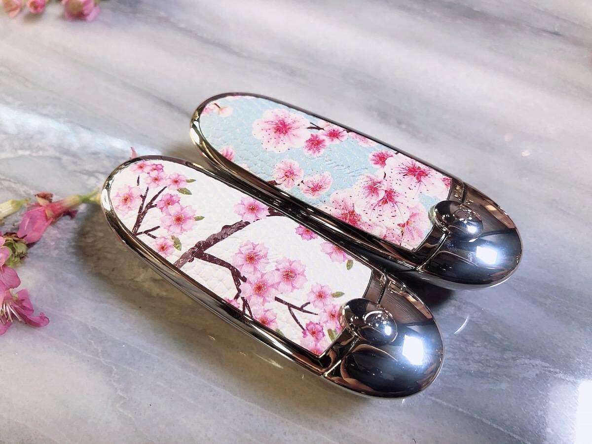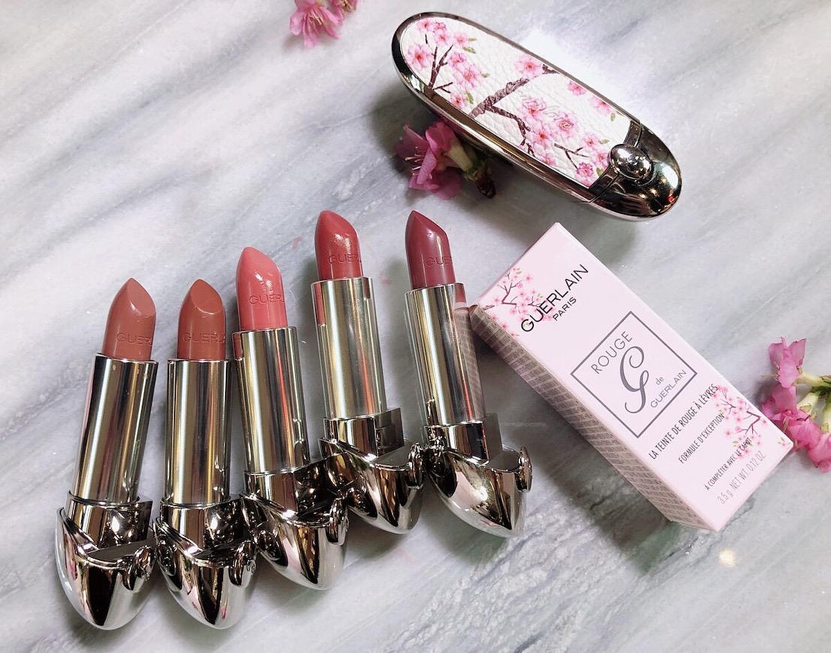 推出「漫天粉櫻限量版紅寶之吻高訂唇膏彩殼」。分別兩色「寧靜白」與「詩意藍」,質感皮質上印有一朵朵粉櫻,為這個春季增添了更多的清新氣息。