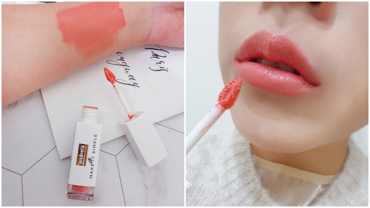 「andreia女王本色水感鏡面唇釉」,一擦上唇部立即漾出晶瑩閃耀的水潤光,真心驚嘆好美啊~~連自己看了都想立刻啾下去,超顯色的絲滑質地,擦上後超滋潤完全不黏膩,#02典雅超juicy的粉嫩蜜桃色畫出溫柔優雅雙唇,畫上後根本就是仙女本人~M編試用後已經下單全部包色!讓異性毫無抵抗力的整體妝感,終極脫單關鍵絕對就是靠這隻!