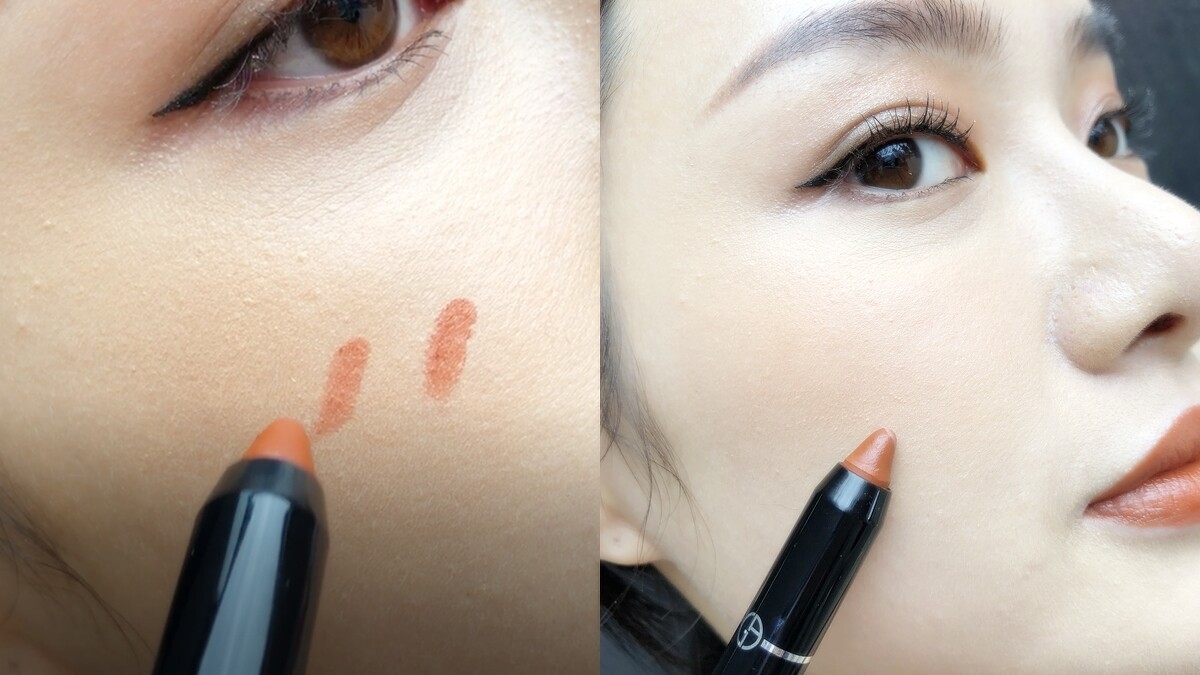 這支美唇筆擁有ARMANI絲潤柔滑科技,質地輕盈如奶油潤滑好塗抹,還有「絲絨漾色粒子」,塗上後過一陣子就會變成偏絲絨的感覺,屬於霧面唇妝。