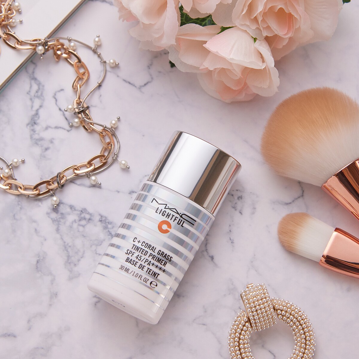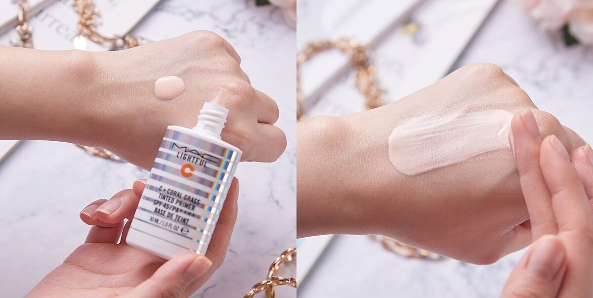 一推出就賣到斷貨的超級妝前乳-M·A·C「超顯白防護飾底乳SPF45/PA++++」,又有”玫瑰濾鏡乳”之稱,獨家玫瑰色柔焦粉體,去蠟黃、減暗沉,還能隱形毛孔及細紋,直接讓妳抹出戀愛般的粉紅光。