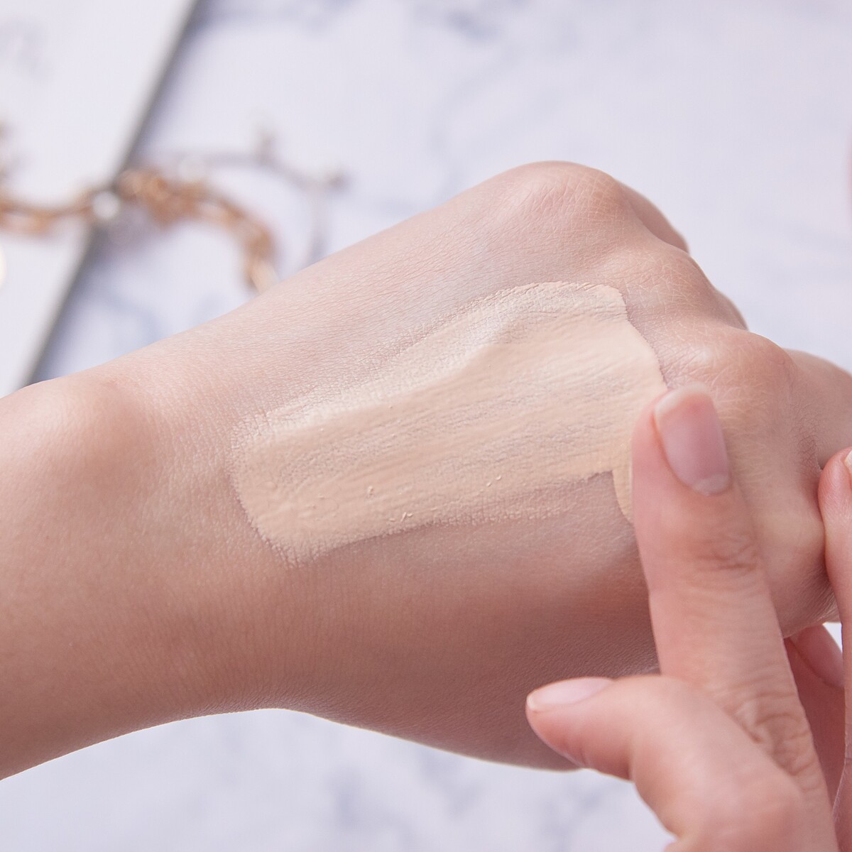 超輕盈的水乳狀質地,小小一滴就能延展至半張臉,專利持妝科技在肌膚上迅速形成持妝薄膜,緊緊吸附粉底,上妝後就像用完吸收力超強的保養品一樣,舒適清爽且維持底妝持久不暗沉。