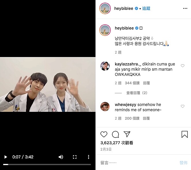 近日李聖經也遵守收視率破10%就會與安孝燮獻上合唱的承諾,兩人一起穿著醫師袍在IG放上合唱劇中OST《Your Day》的影片(https://www.instagram.com/tv/B8FsmqOgrnA/?utm_source=ig_embed),也讓大家更好奇這對CP到底會如何發展。