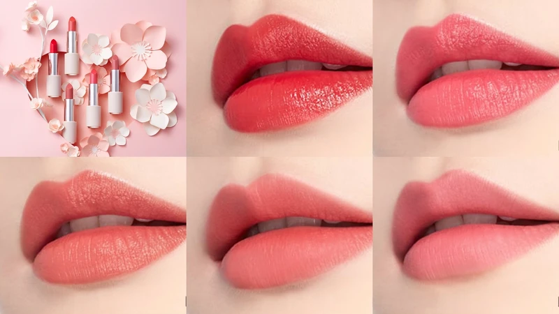 顏色偏溫柔粉色,包括櫻花珊瑚色、粉金感的亮粉色、裸粉大地色、咖啡珊瑚珠光、紅絲絨櫻花亮粉色、帶點粉色感的星空咖啡色。