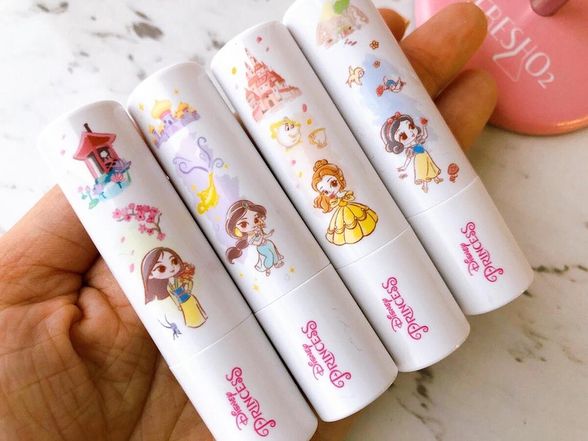 品牌熱銷與話題度最高的換色潤唇膏,能藉由PH值自動感應換色,打造專屬自然唇色。四款Q版公主圖案:木蘭、貝兒、茉莉和白雪,共有蘋果、玫瑰雙口味。