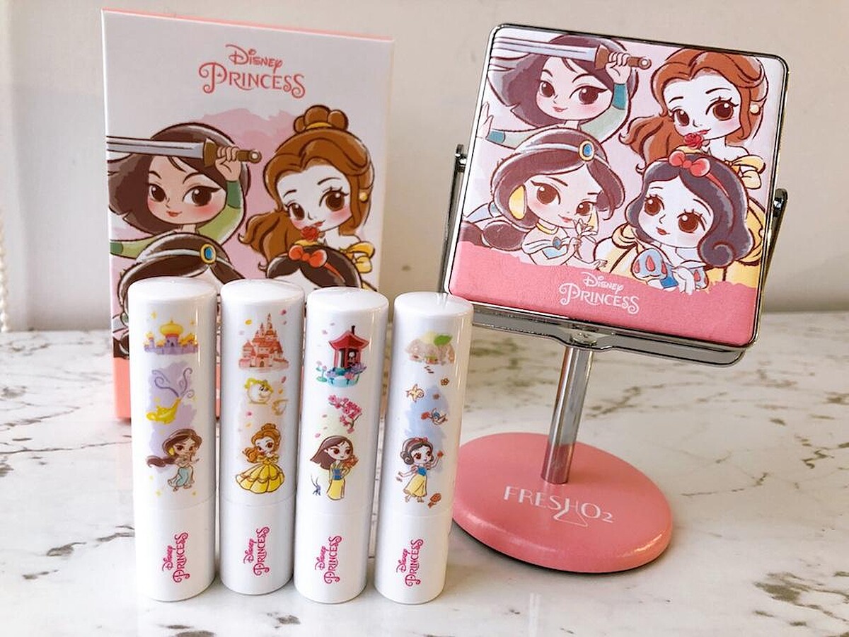 FreshO2從2019年陸續推出迪士尼授權《玩具總動員》、《獅子王》、《怪獸電力公司》、《黑魔女》、《冰雪奇緣》話題彩妝,今年2020派出「迪士尼公主」,同時加上他們的好夥伴們小矮人。結合每一個公主故事,將角色的特色融入彩妝,全系列共推出以下12款商品。