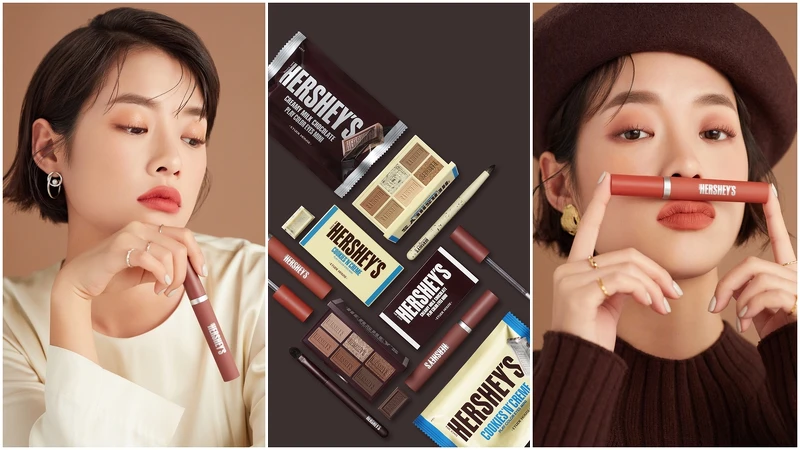 近兩年泰奶、甜點系彩妝色盛行,韓文中有一詞「맛집 (Mat-jip)」,意思為好吃的美食店,而韓妞之間也有一個專屬於甜點系彩盤「Palette Mat-Jip」的暱稱,其中又以Etude House和各品牌的聯名最受矚目,像是去年推出韓國官網限定販售的 Kit Kat 聯名引發話題,今年則與 Hershey’s 簽訂全球合約,推出Hershey’s 原味牛奶巧克力及白巧克力餅乾兩款不同口味的各種彩妝!