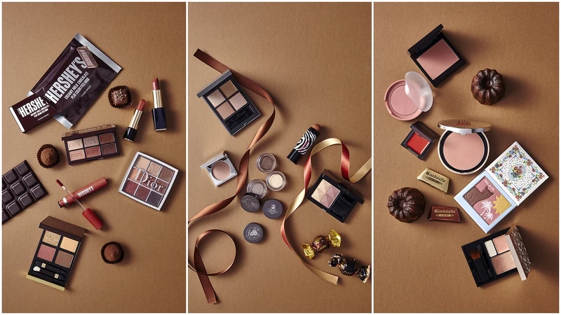 其中可可系眼妝就像一杯暖心的熱可可以一樣,輕而易舉就能溫暖大家。淺棕色打底,接著疊上深咖啡色染出眼部陰影感,最後將帶有珠光的色調用來畫出迷人臥蠶,就能打造亞洲人版本的偽混血深邃眼妝,利用咖啡可可色調校正眼型,是不會出錯的選擇。