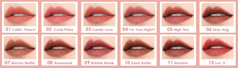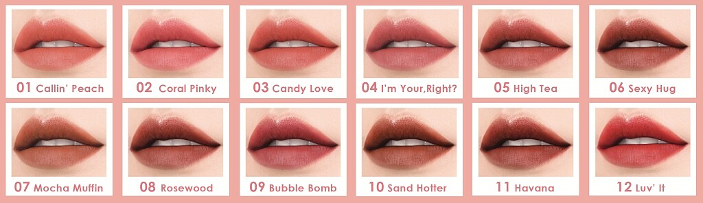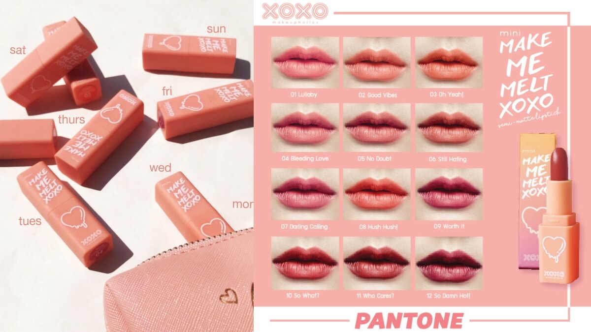 在泰國超熱賣的XOXO啵波霧面唇釉系列,堪稱架上的斷貨王!防水持久又不顯唇紋的柔霧質地超受歡迎,而且質地滑順好延展,隨手一塗就能均勻顯色,這也是唇彩當中最持色的系列,一共推出12色。