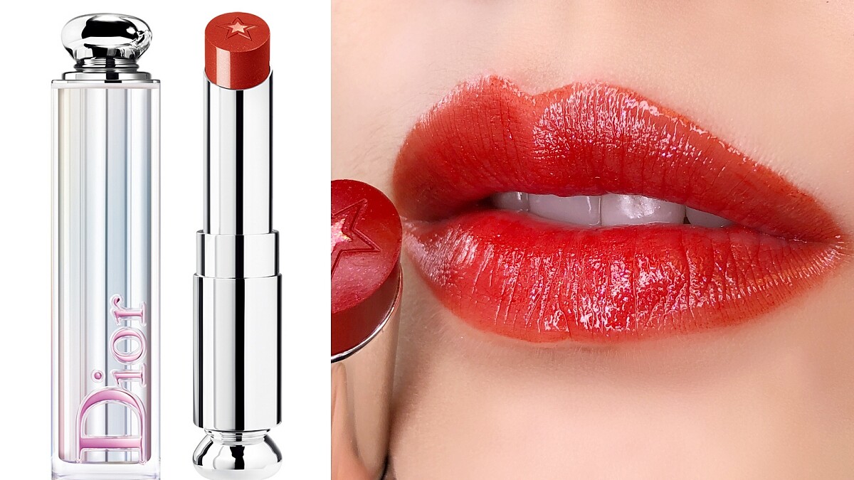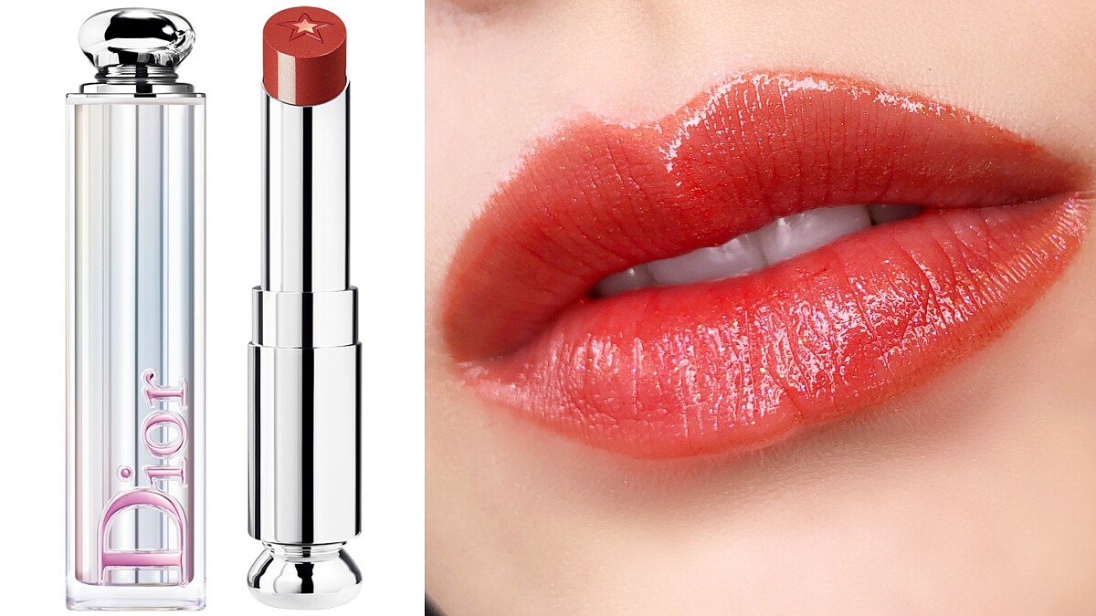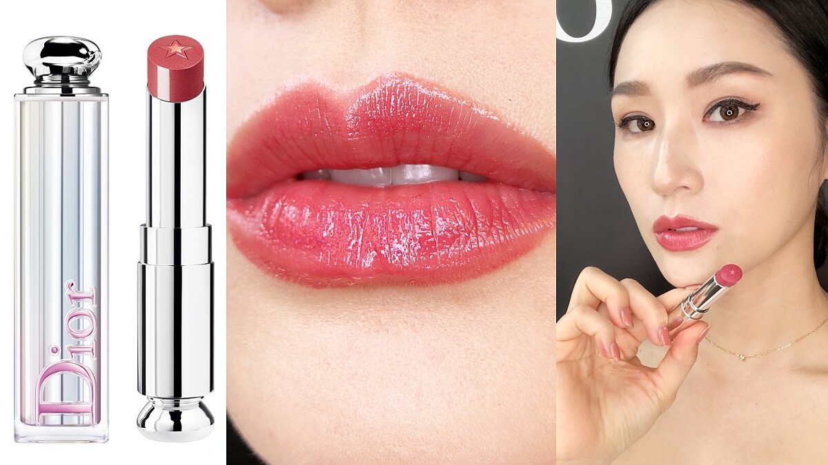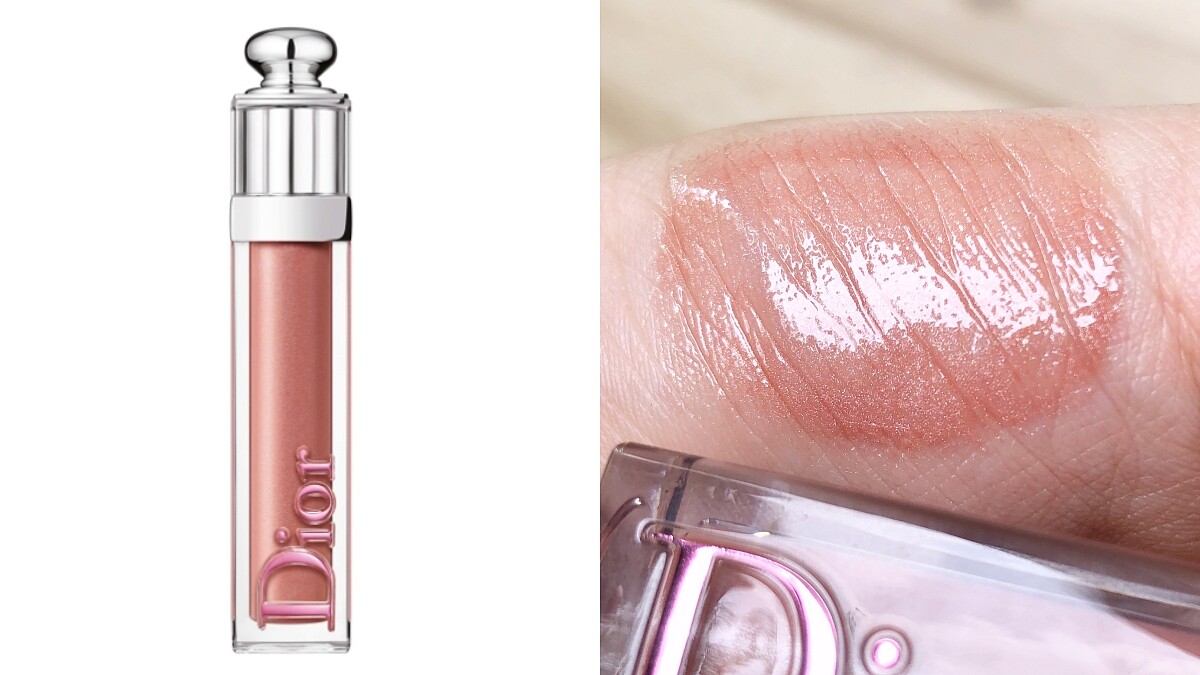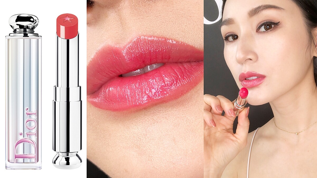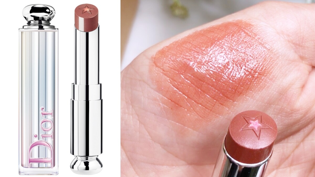 跟幸運星唇膏同步上市的還有同系列的「迪奧癮誘蜜潤光唇彩」(Dior Addict Stellar Gloss),一次滿足舒適持妝、柔潤保濕、聚光綻色三大訴求,比起普通的唇蜜的發色更加鮮明飽和,一擦雙唇好像鍍上「光潤鎖水膜」一樣。仔細看裡頭也和幸運星唇膏一樣有著極細緻的珠光,所以擦起來特別有光澤。