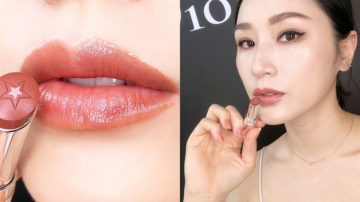 由於幸運星唇膏添加了金燦星光粒子,讓這溫柔肉桂奶茶色更有極致水感光澤,一抹氣質滿分。