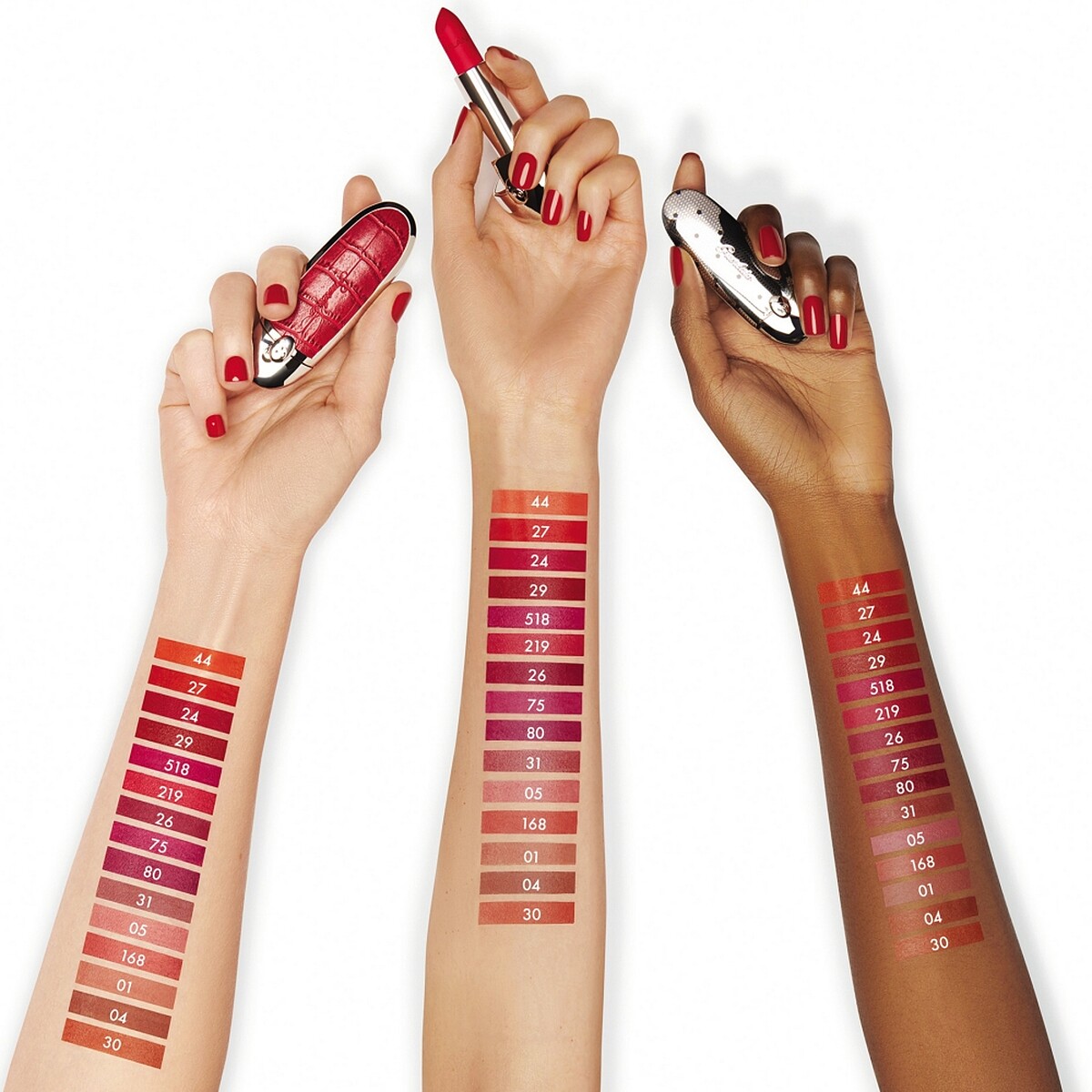 為了新口紅上市,法國嬌蘭再度與位在芳登廣場設立珠寶專門店的知名珠寶設計師Lorenz Bäumer攜手合作,打造8款新的Rouge G紅寶之吻唇膏彩殼,當中有4款宛如高級珠寶切割面的寶石彩殼、4款裝飾著千顆奢華晶鑽的唇膏彩殼。