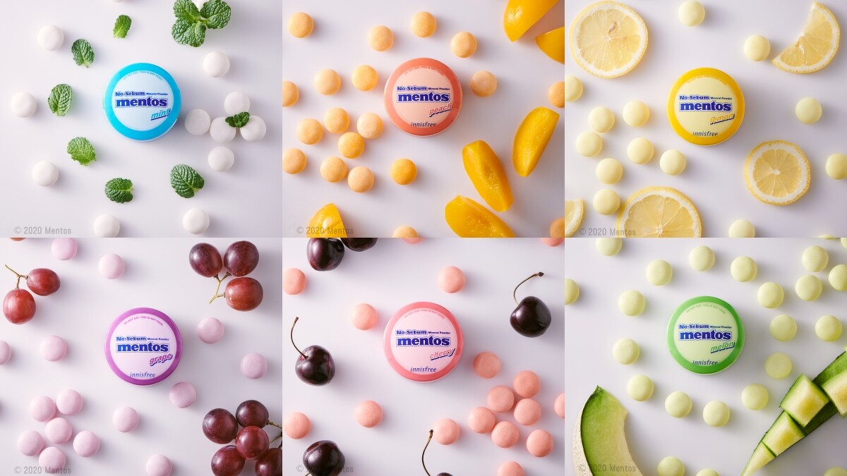 innisfree無油無慮礦物控油蜜粉2020年的聯名限定版超有趣,以曼陀珠最經典熱銷的6 種口味做為設計概念,就像曼陀珠帶給大家清新涼爽的形象一樣,使用蜜粉的時候也能沉浸在水果香氣當中,擁有清爽好心情!