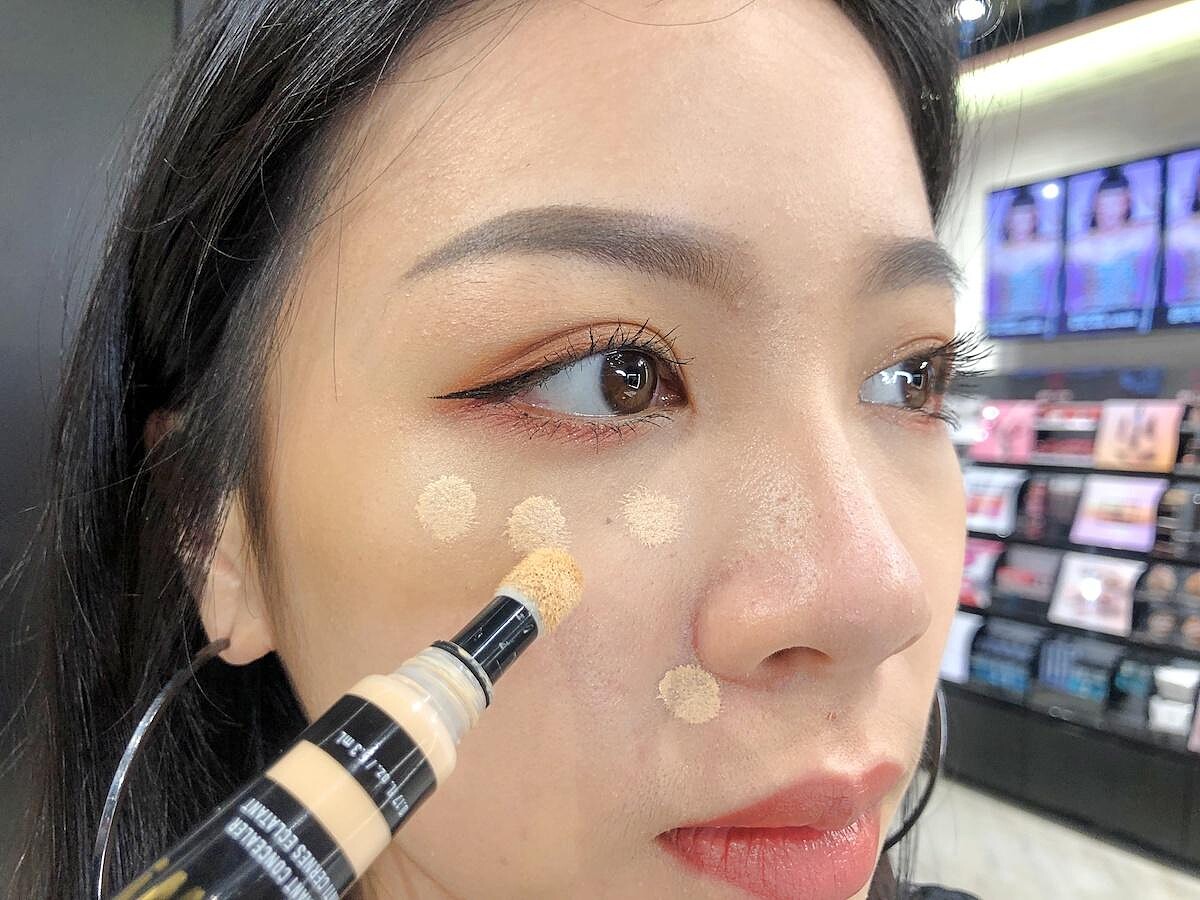Step3: 接著以指腹輕輕點開,再輕柔抹勻,眼下暗沈、黑眼圈、泛紅等問題都能完美遮蓋。