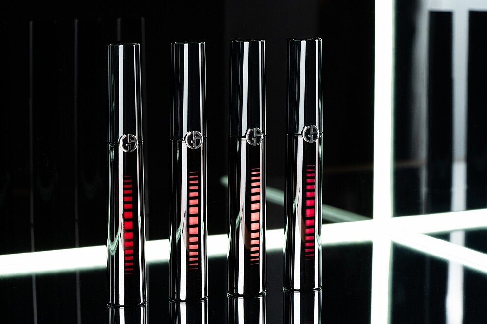 一向以時尚秀場為靈感的Armani先生,2020年受到秀場後台鏡中折射閃耀的美麗光澤啟發,推出擁有絕美水鏡光的「奢華訂製鏡光水唇釉」。強調能如唇膏般濃烈顯色、唇露般輕盈潤澤。質地輕觸雙唇後會轉為輕盈水鏡光薄膜,完美折射光線,讓雙唇的光澤感破表。