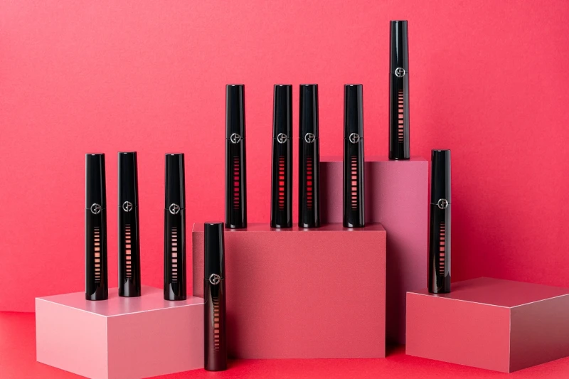 一向以時尚秀場為靈感的Armani先生,2020年受到秀場後台鏡中折射閃耀的美麗光澤啟發,推出擁有絕美水鏡光的「奢華訂製鏡光水唇釉」。強調能如唇膏般濃烈顯色、唇露般輕盈潤澤。質地輕觸雙唇後會轉為輕盈水鏡光薄膜,完美折射光線,讓雙唇的光澤感破表。