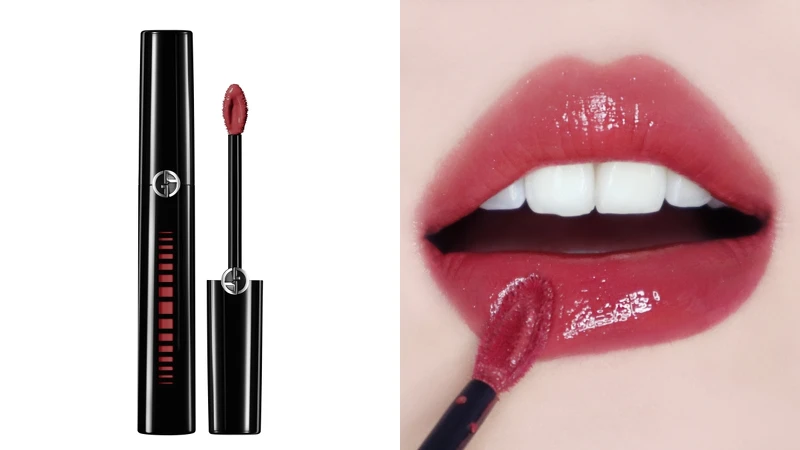 Armani全新黑管「奢華訂製鏡光水唇釉」,超顯色極亮鏡面光澤卻完全不黏膩,#503濃色玫瑰必收,台灣搶先全球上市