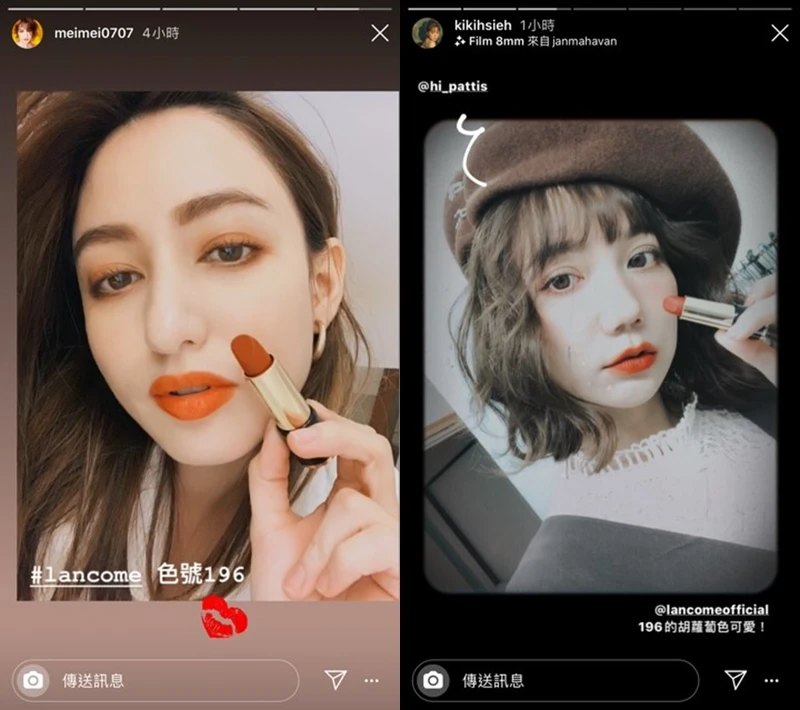 模特兒謝MeiMei和謝琦琦也都超喜歡這支蘭蔻絕對完美迷霧唇膏#196,實擦超白皙又性感的暈染胡蘿蔔唇,性感中又帶著一點少女感,讓她們愛死了,聽說已經是每天都一定會帶出門的最強顯白指定色!