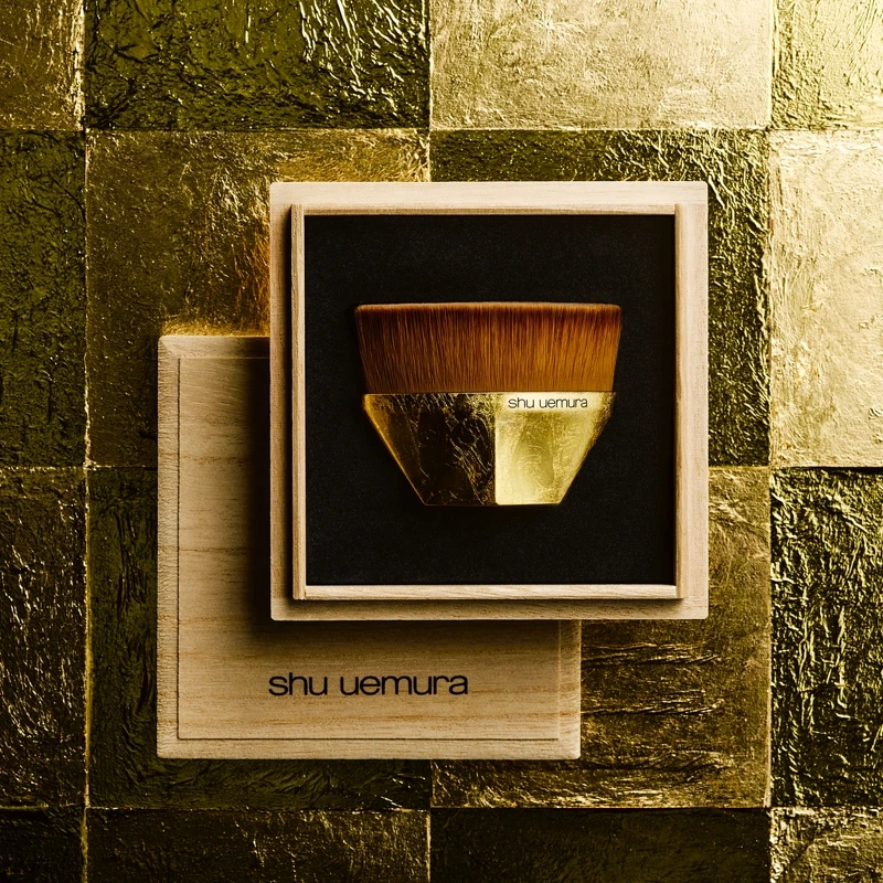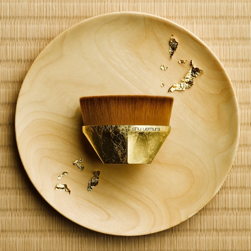 植村秀神級粉底刷「#55刷」推出黃金限量版,真的用手工貼上一片片金箔,奢華無極限