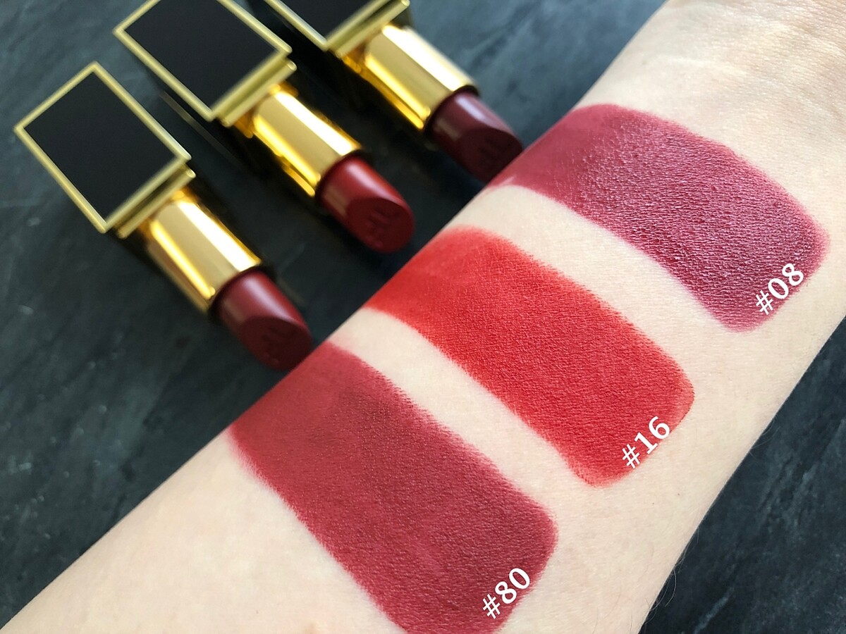 色號:#01 INSATIABLE (乳霜)、#02 LIBERTINE(乳霜)、03 FLESH(霧面)、#08 VELVET CHERRY(乳霜)、#09 TRUE CORAL(霧面)、#15 WILD GINGER(霧面)、#16 SCARLET ROUGE(霧面)、#80 IMPASSIONED(霧面)、#100 EQUUS(霧面)、#303 EMPIRE(乳霜)、#307 DASHING(霧面)、#507 SHOCKING(乳霜)、#508 PRIMAL(乳霜)、#510 FASCINATOR(霧面)、#511 STEEL MAGNOLIA(霧面)、#512 VERVAIN(霧面)