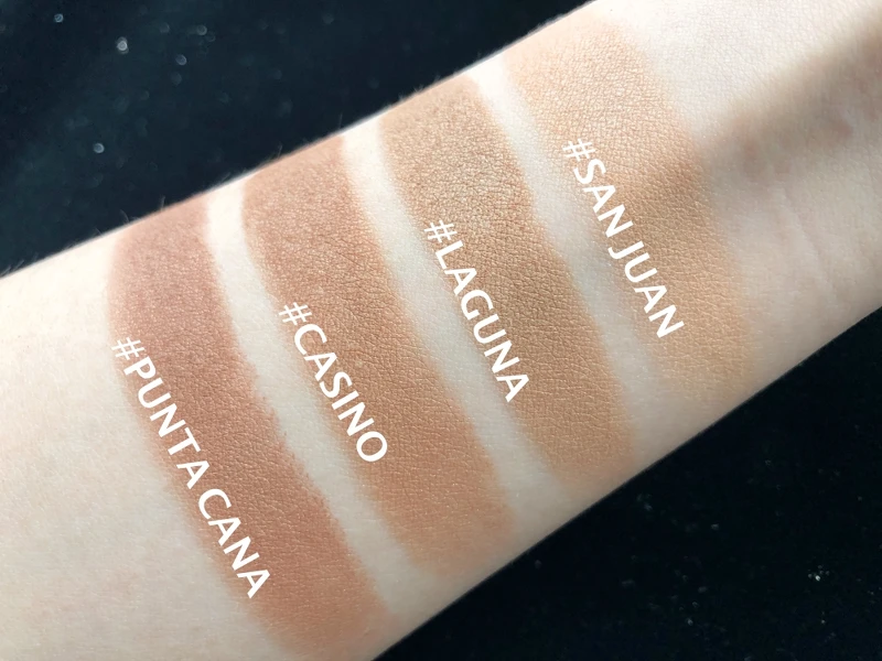 3D立體燦光修容餅一共推出4色:#SAN JUAN燦光淺銅色、#LAGUNA燦光暖銅色、#CASINO燦光古銅色、#PUNTA CANA燦光深銅色。