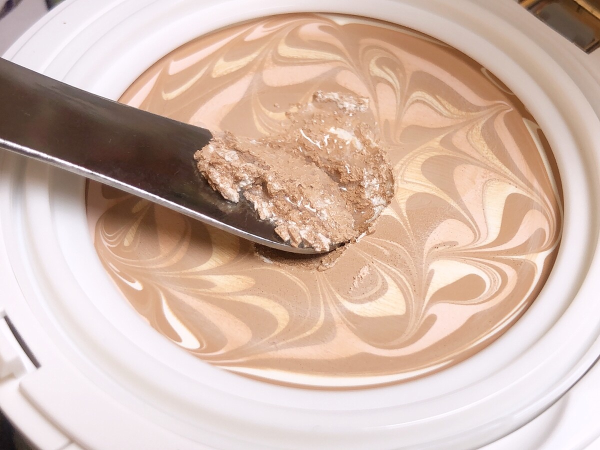 ↑由於有高達68%極光水精華,因此若是試著刮粉底,甚至可以刮出水來!