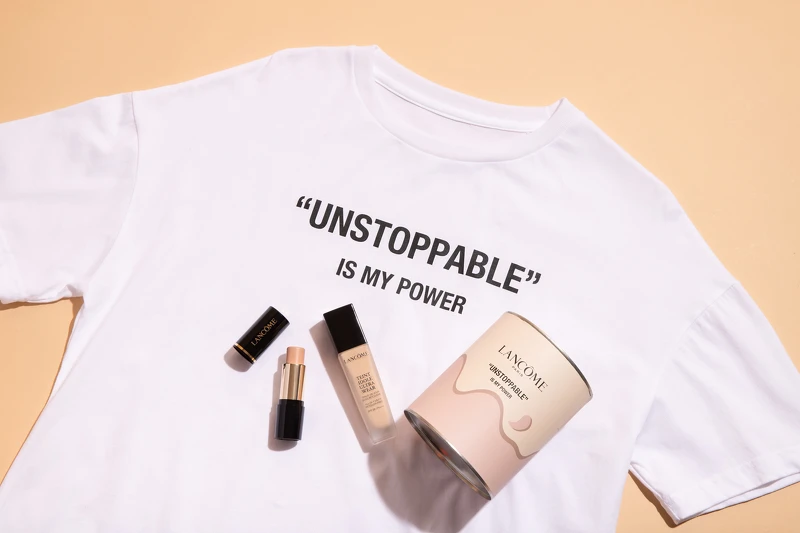 以粉底經典奶茶色為設計,內裝印有「Unstoppable is my power」字樣的白色潮T,印證「穿白T粉底也持久不沾染」,只有零粉感實力夠堅強,才敢這樣玩挑戰!重點是贈品未免也太實用,時髦的潮T舒服好穿又百搭,奶茶罐除了拿來裝零食還可以當刷具收納盒,數量有限送完為止,姊妹們要搶要快!