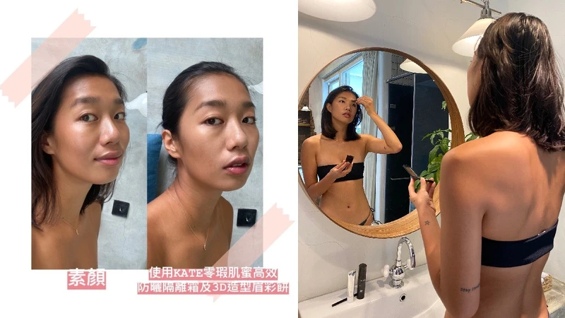 熱愛戶外運動的野女孩Lynette為了保護肌膚同時美化氣色,對防曬隔離產品更是在意,像KATE「零瑕肌密高效防曬隔離霜」這樣透氣清爽不泛白的產品,就是她一用就愛上,讓自己暢快運動、大汗淋漓時,皮膚依然感覺清爽會呼吸的好產品!「我會在出門前用KATE『零瑕肌密高效防曬隔離霜』搭配同系列粉餅打底,然後全臉噴『長效美肌定粧噴霧』,使底粧更薄透持久。」