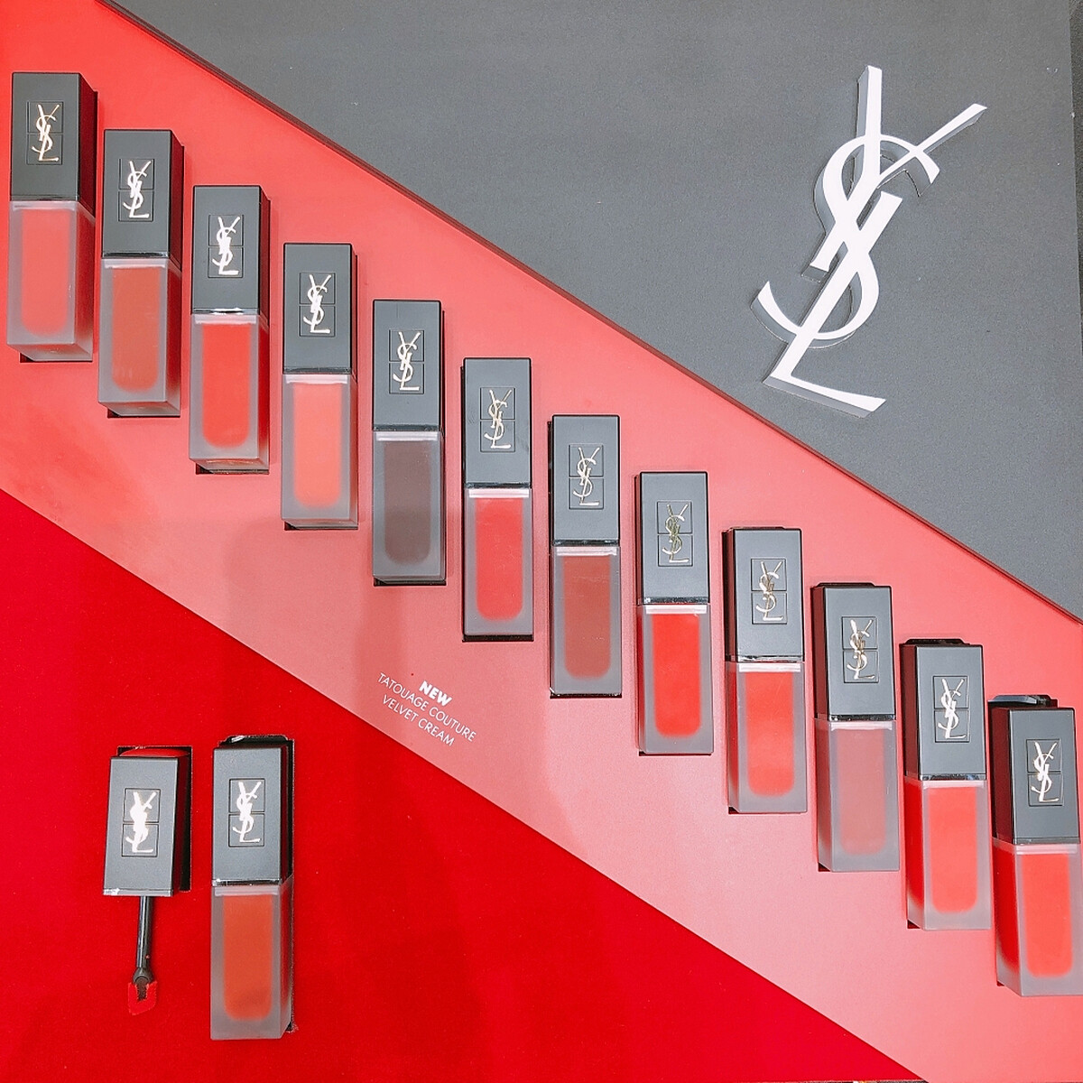 YSL「黑蓋絲絨唇釉」時尚印記雪絨唇釉主打同時擁有唇膏的滋潤度,又有霧面唇彩的獨特性。揉合高密度極緻色彩分子,還加入雪絨嫩唇精露,使唇瓣柔軟彈嫩。剛塗抹時帶有水感,接著會變成雪絨霧感,即使夏天擦也不會覺得過於厚重。