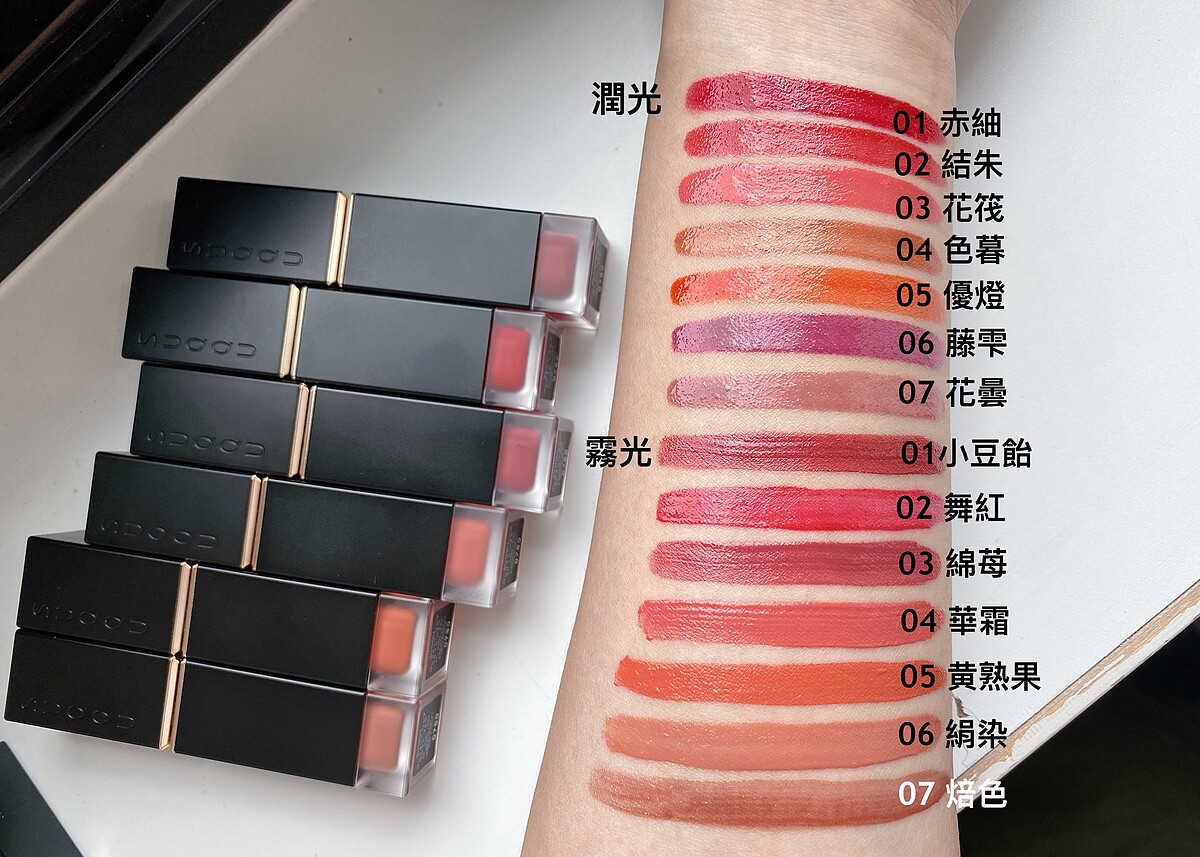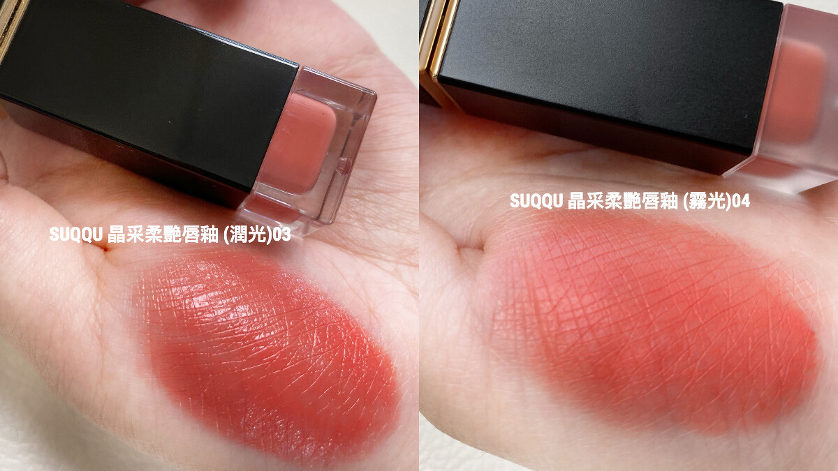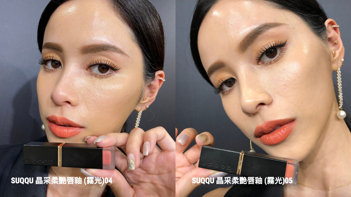 SUQQU 2020年9月推出兩種質地的新款唇釉14色,分為#FOG(霧光)和#GLOW(潤光)兩類型色群各7色,採用含液量佳的扁平式短毛刷頭,一次的塗抹量更容易掌控,更能精準勾勒出唇線。
