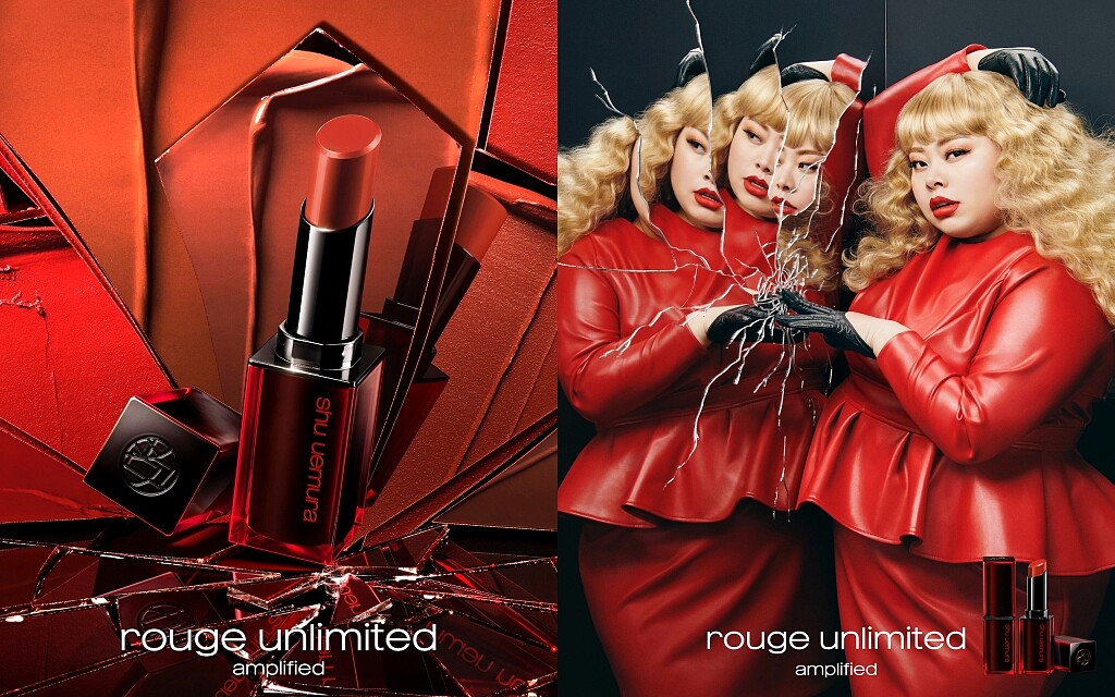 植村秀無色限極霧保濕及釉光精油唇膏2020年包裝升級變身,在黑方管裡透出鮮明紅色調,展現大膽玩色個性。其中無色限極霧保濕的「BR784巨美棕紅」更找來日本人氣女星渡邊直美合作,演繹絕美形象照。
