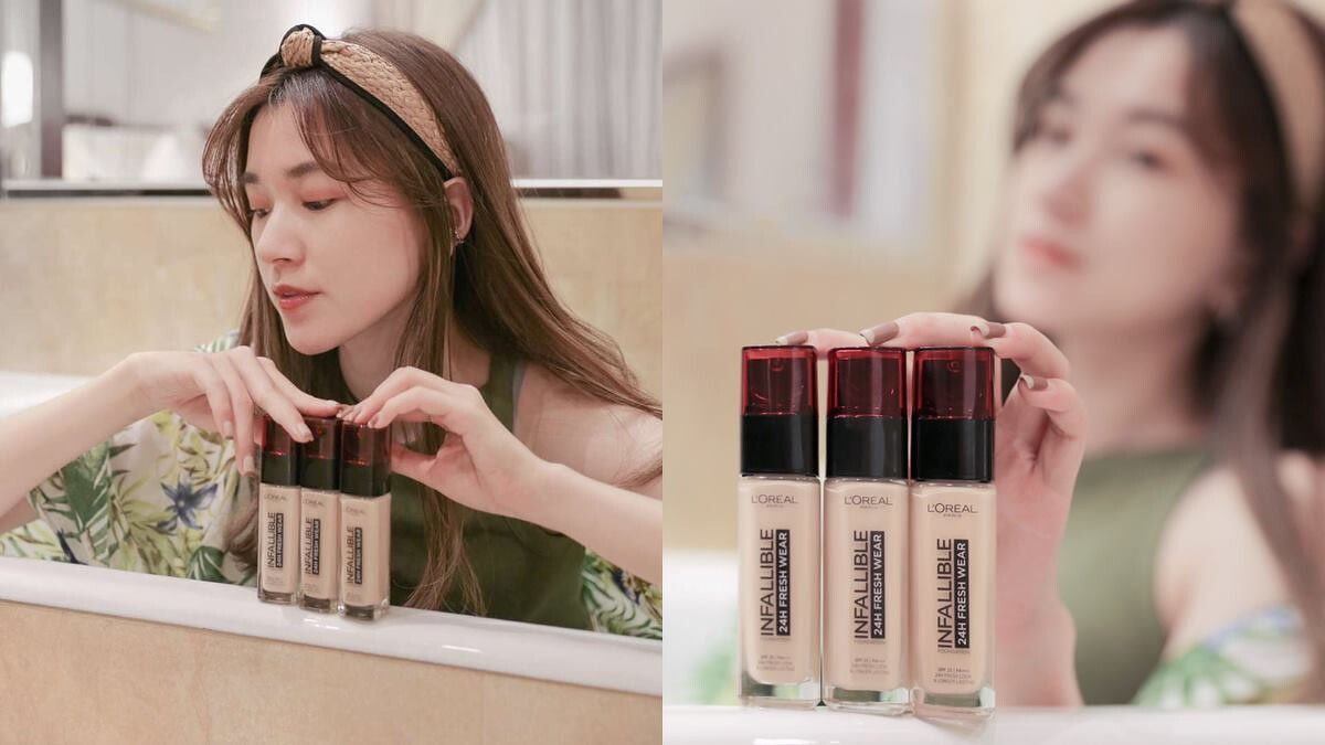 身為萬年脫妝教主Tiffany,有一天體感溫度竟然高達40度,太嚇人,臉上的妝也花得驚人,幸好IG最近燒得很狂的巴黎萊雅24H無瑕完美粉底液直接拯救Tiffany脫妝問題,她更與大家分享自己的化妝小技巧,就是粉底液搭配隱形無痕恆霧蜜粉餅,蜜粉餅跟吸油面紙一樣強大,還能再次加強底妝妝效,創造霧面妝感,並微霧奶油光,超美!