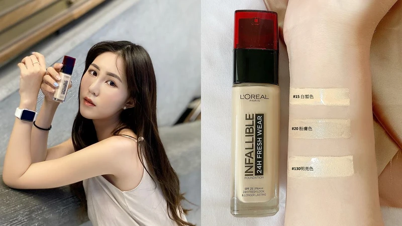 Tiffany選的粉底色號是24小時無瑕完美粉底液#130明亮色,她說巴黎萊雅的六種顏色都是根據亞洲人推出的,所以不會有粉底跟自己膚色有很大落差的問題,尤其是想要擁有白皙膚色的人,雖然她是自然膚色,但#130粉底液色號非常的自然,不像是刻意用了白一階的色號,想要透白肌膚的人粉底液選這色準沒錯!